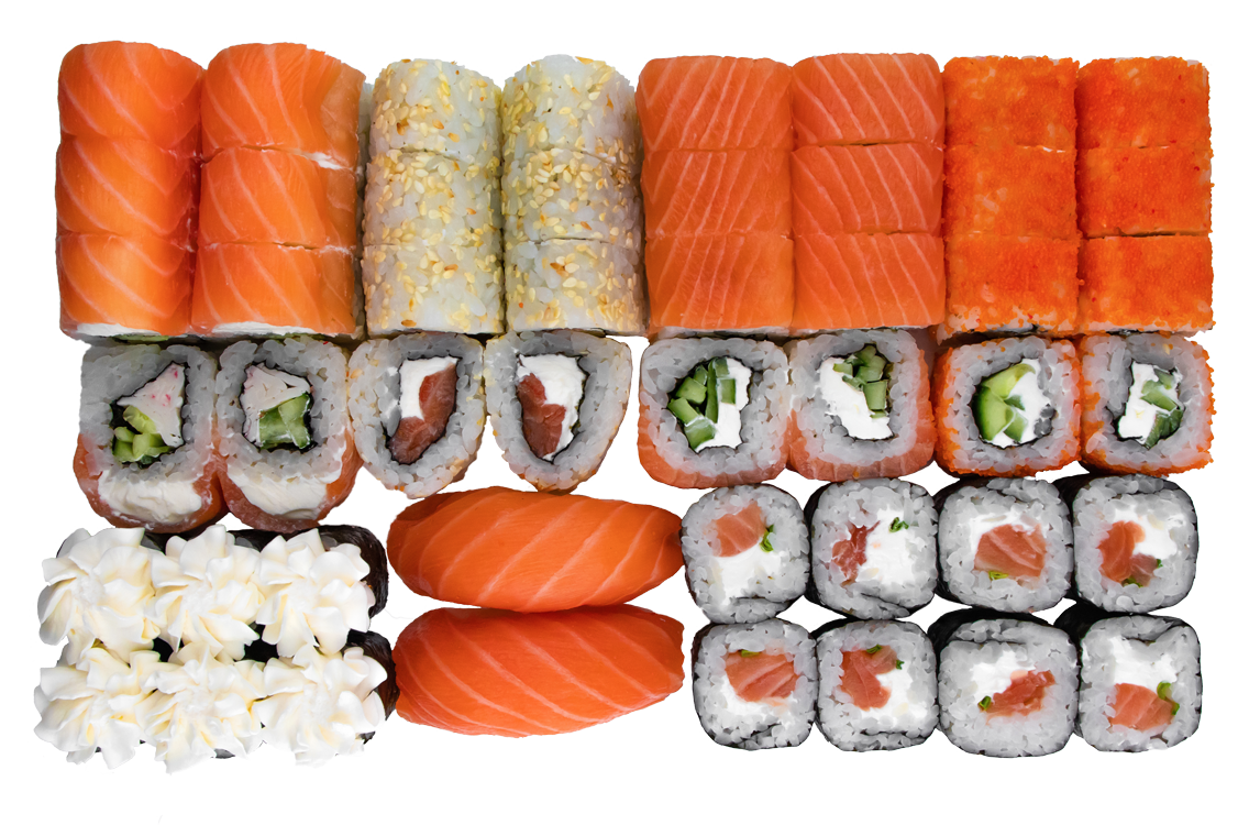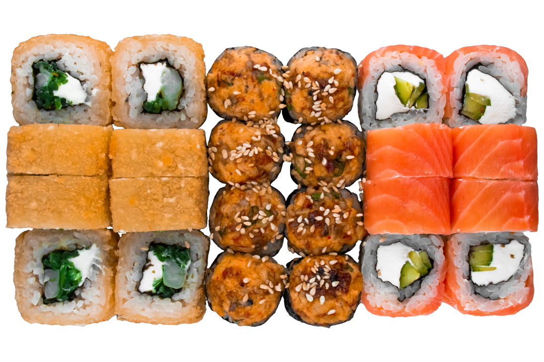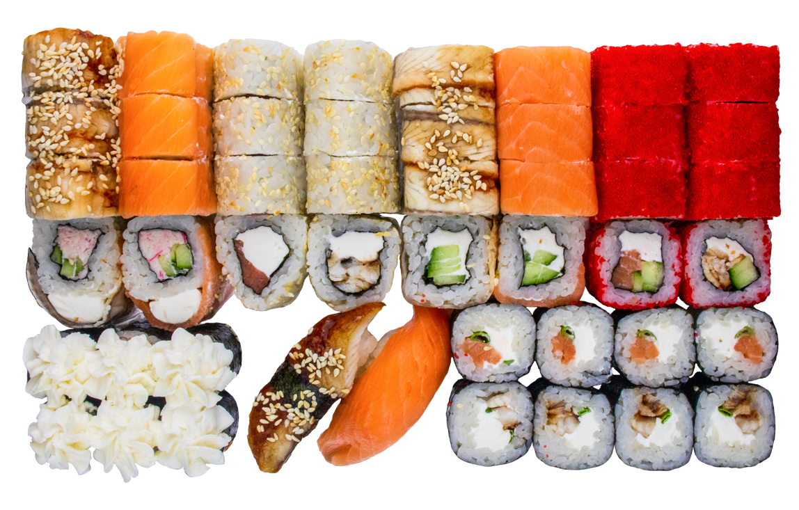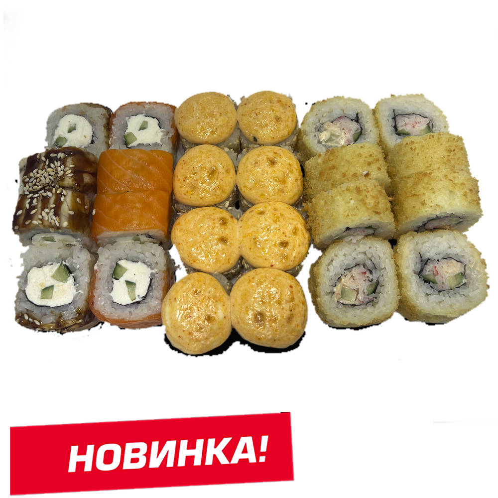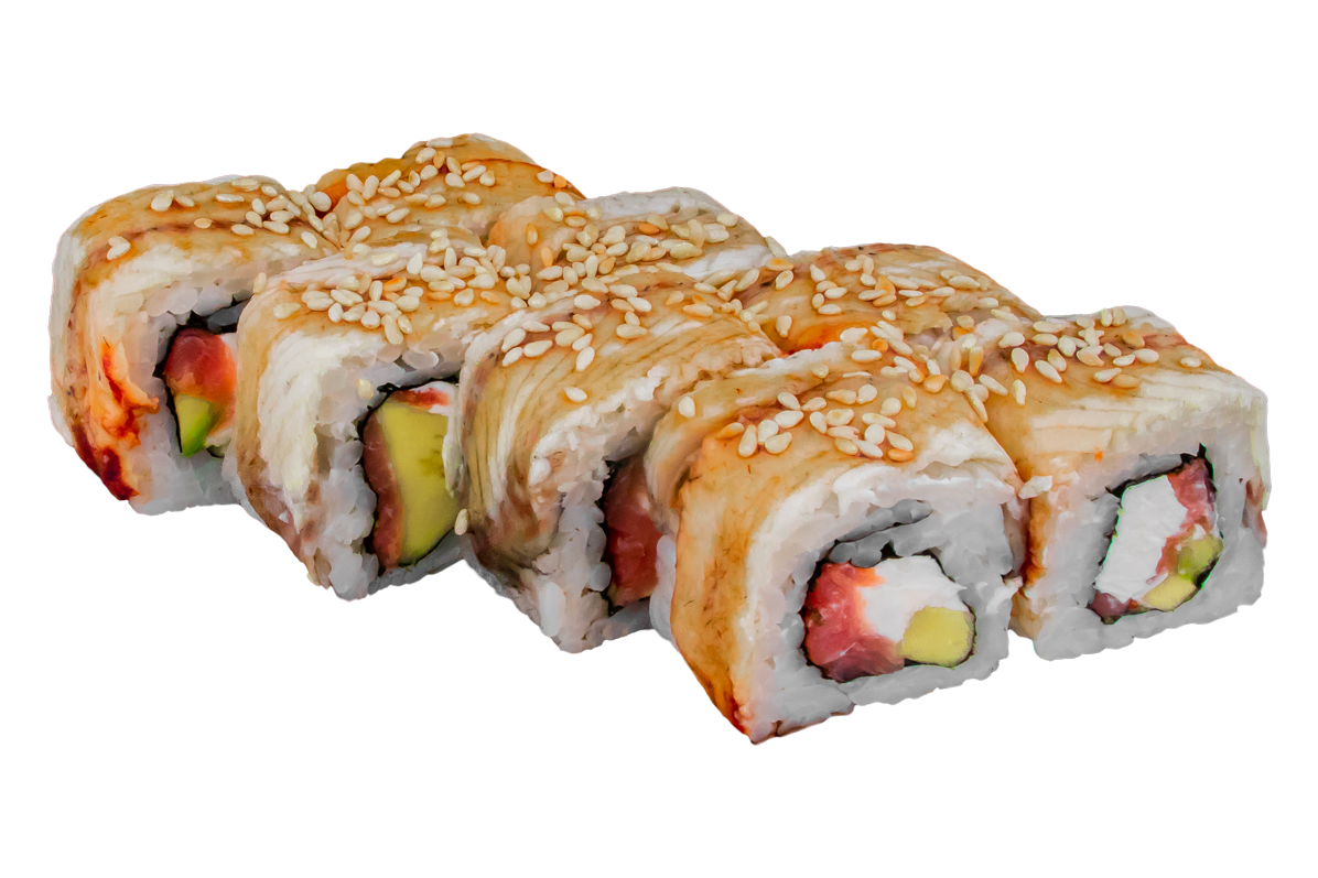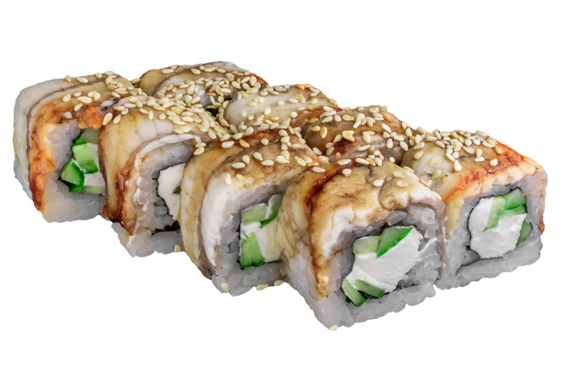 Курица копч,соус розовый,сливочный сыр, омлет, Унаги