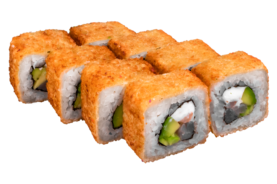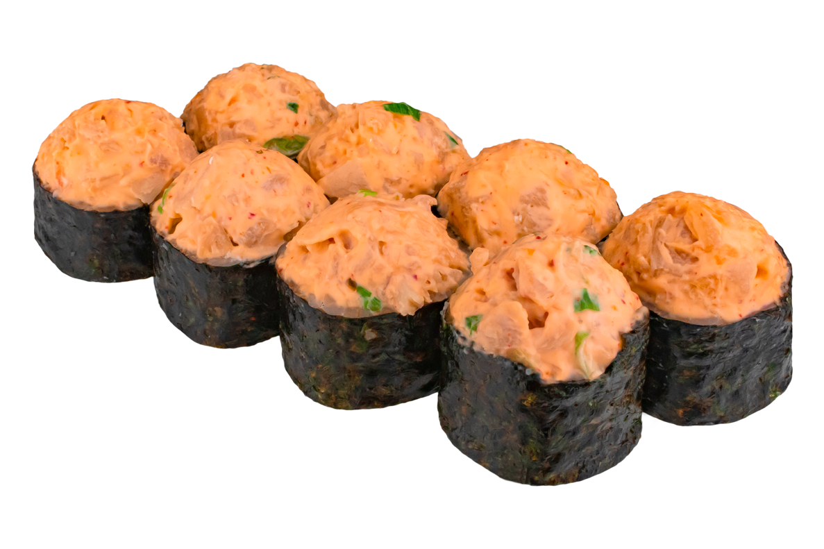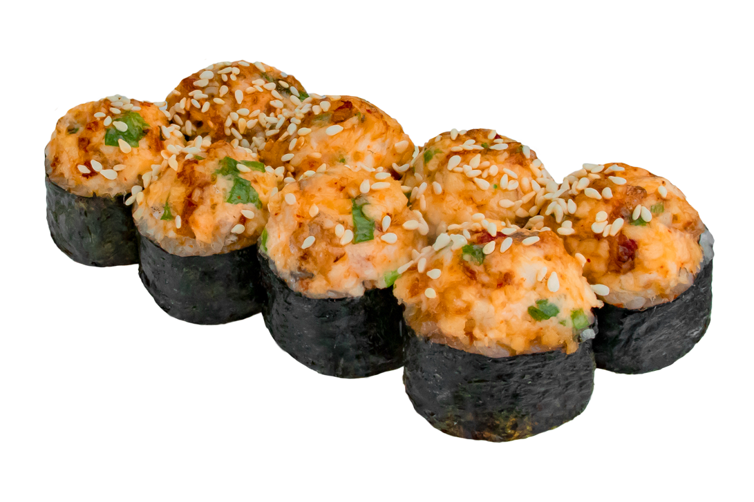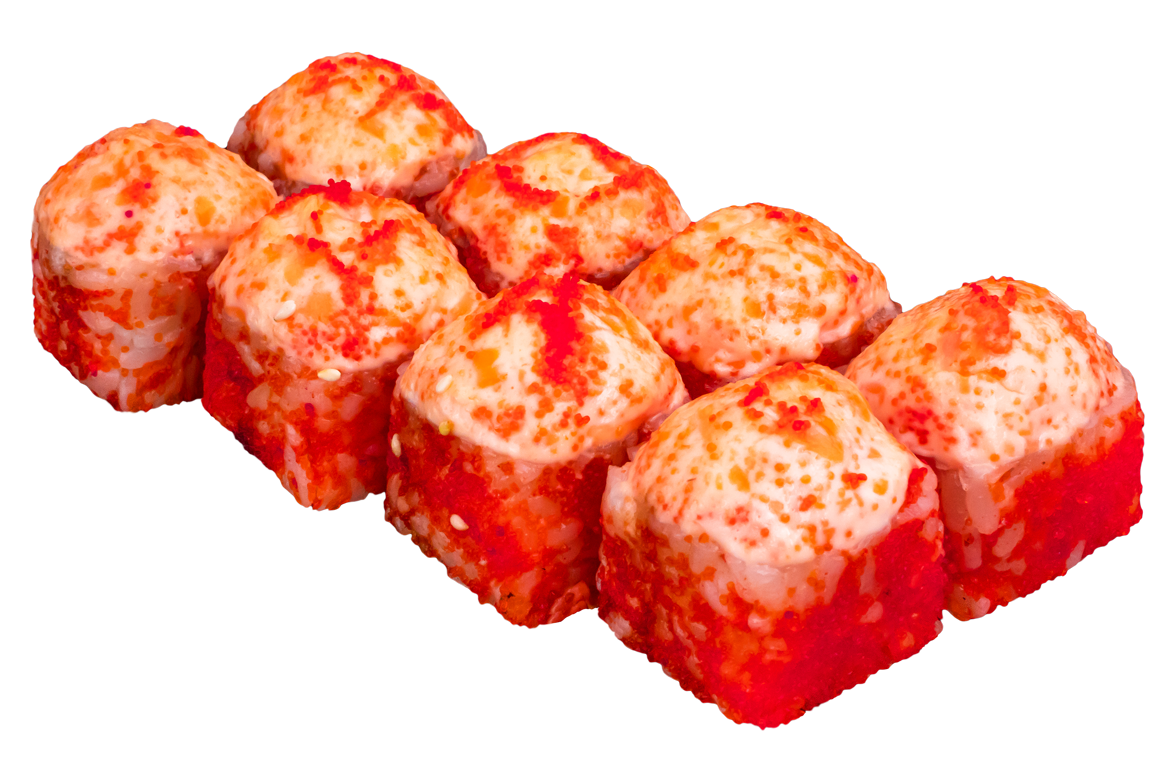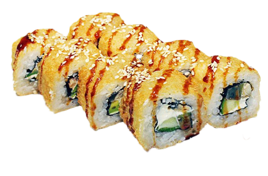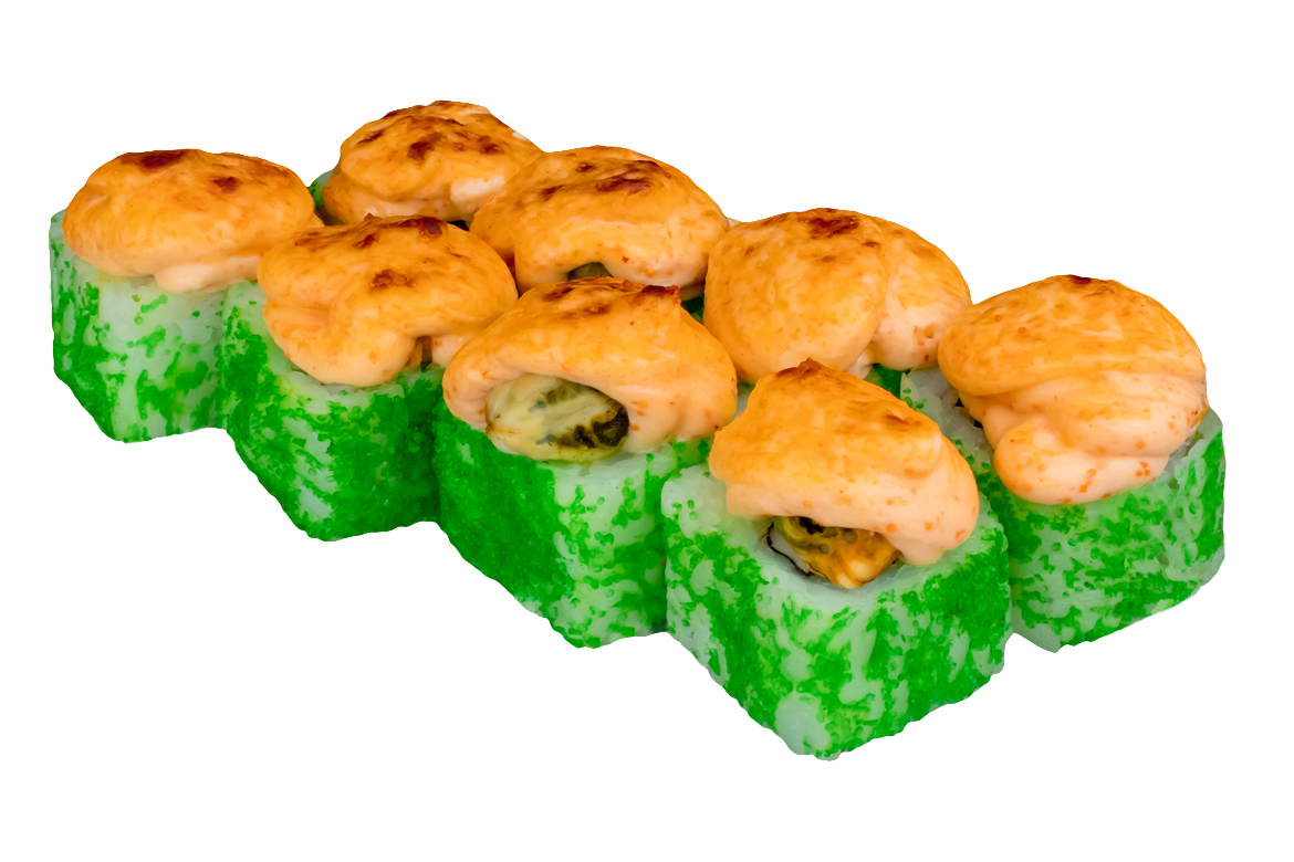 Угорь, омлет, огурец, зеленый лук, соус спайси.
