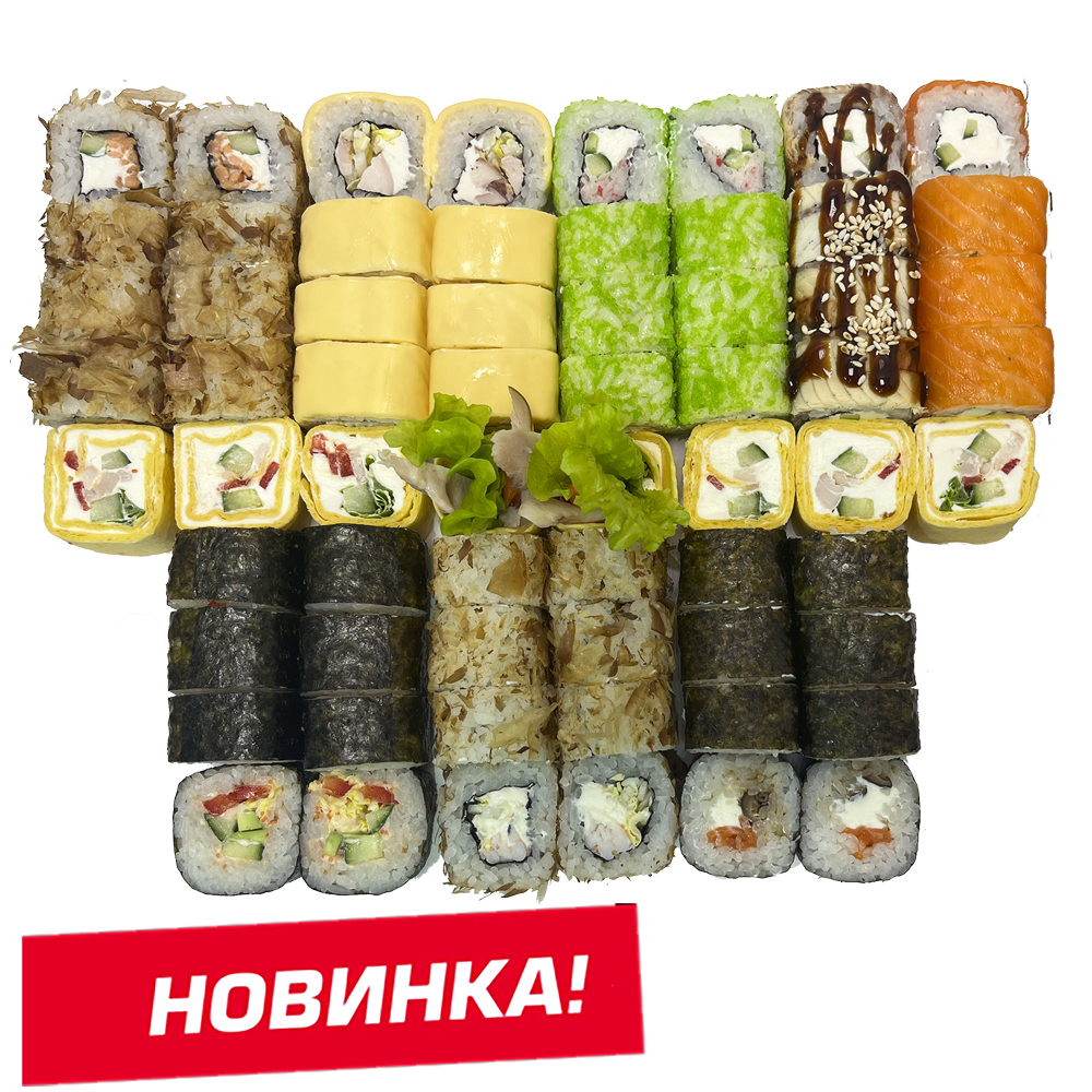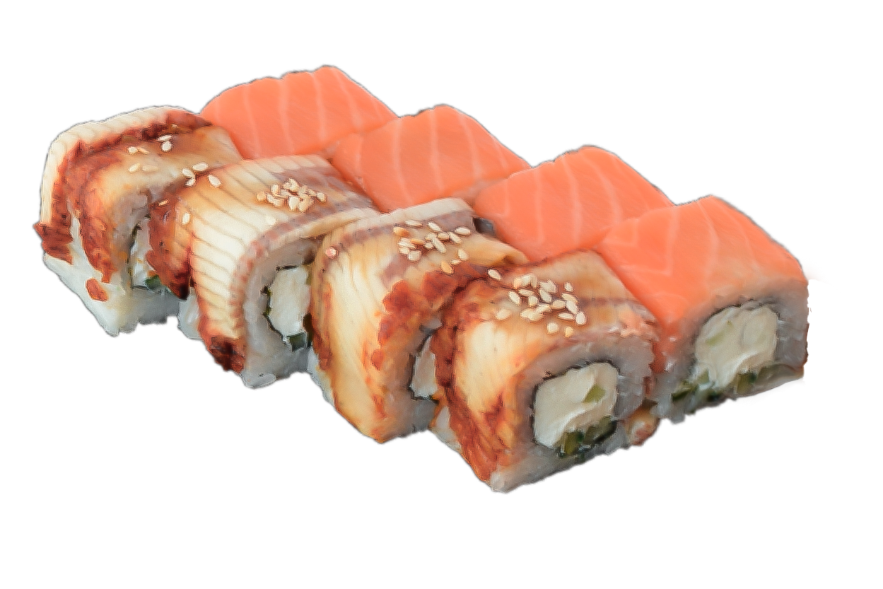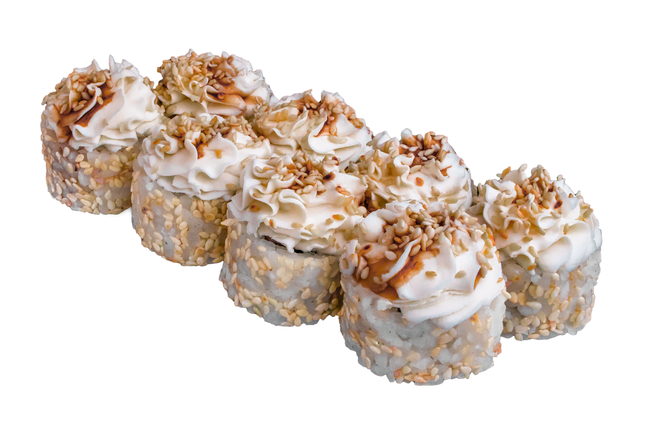 Курица копч,соус розовый,сливочный сыр, омлет, Унаги