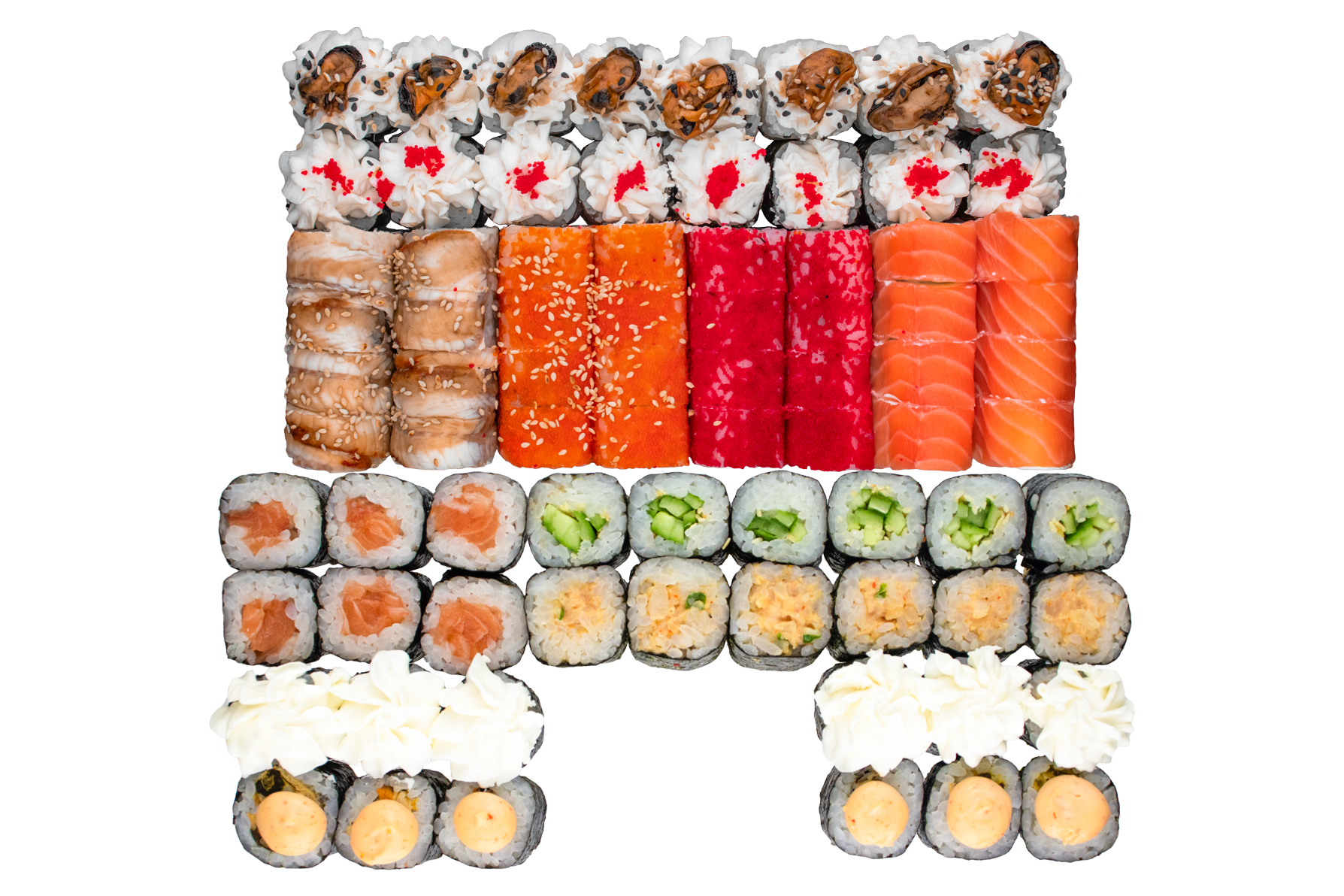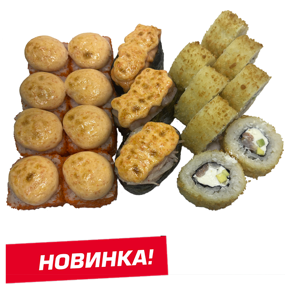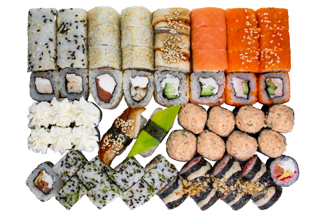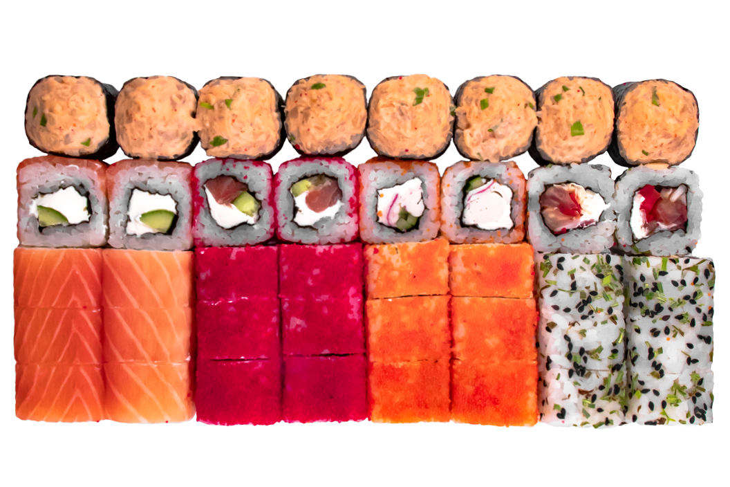 Курица копч,соус розовый,сливочный сыр, омлет, Унаги