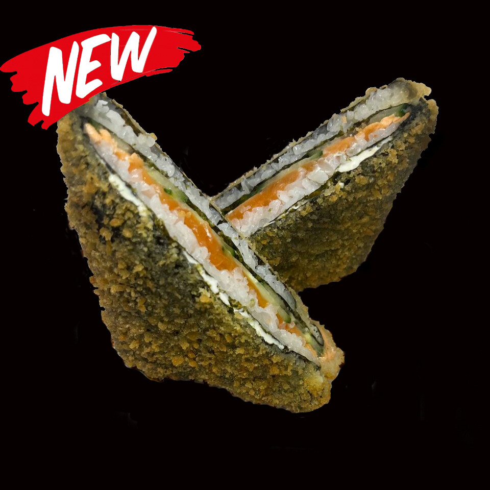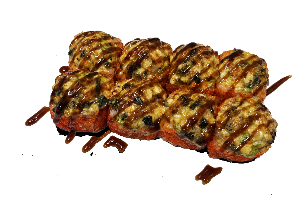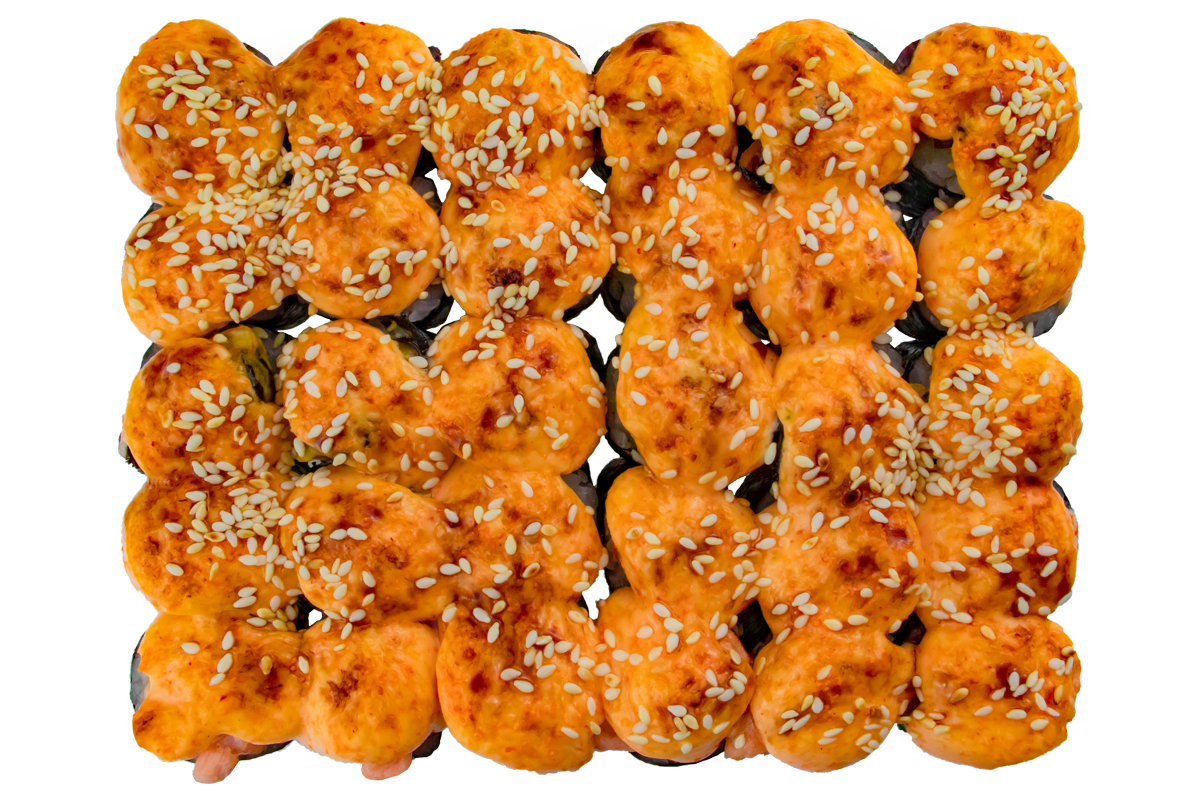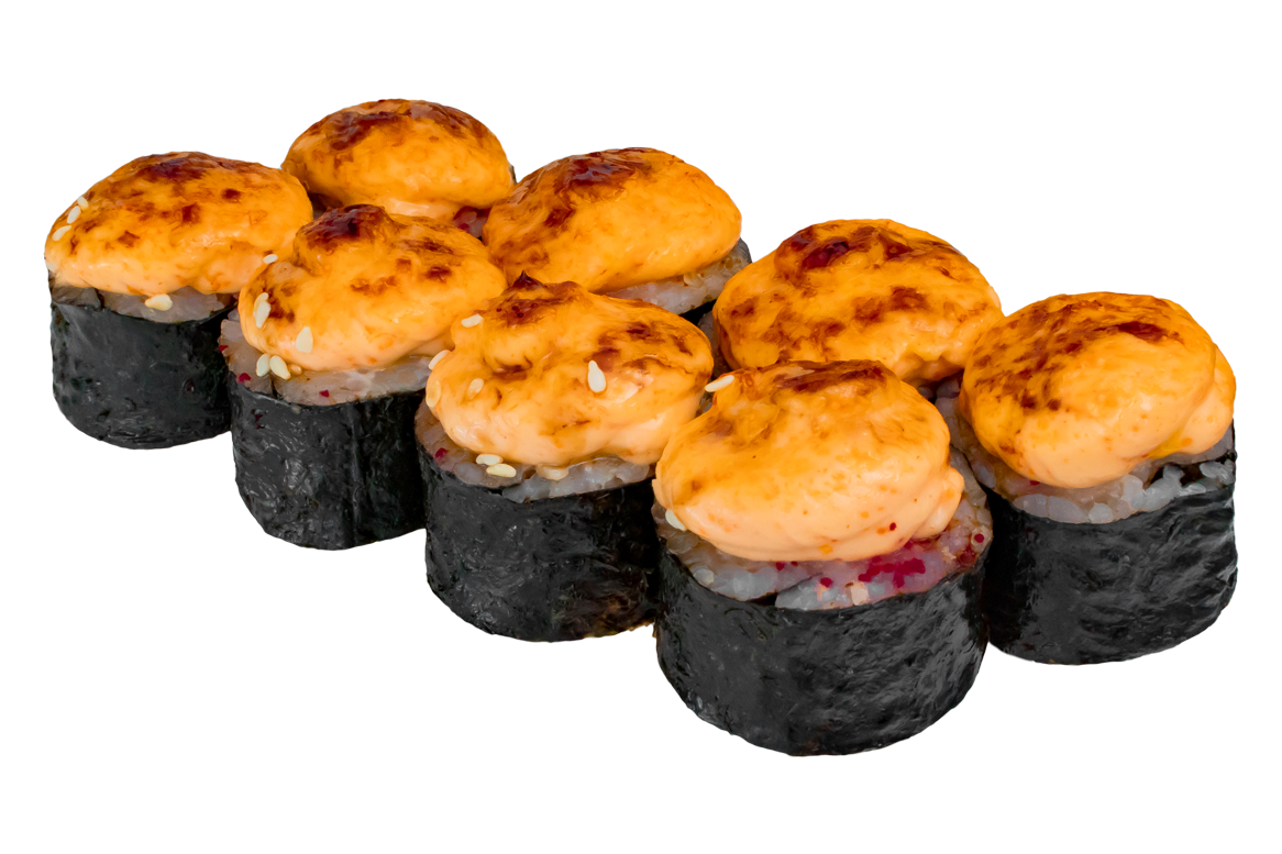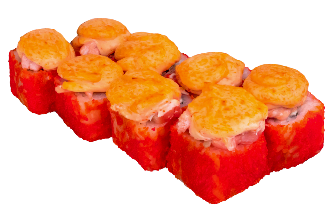Угорь, омлет, огурец, зеленый лук, соус спайси.