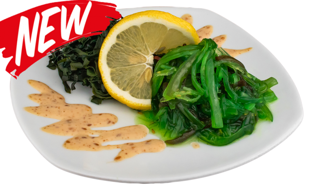 Гребешок, лосось, сливочный сыр, омлет, китайская капуста, соус спайси, соус унаги
